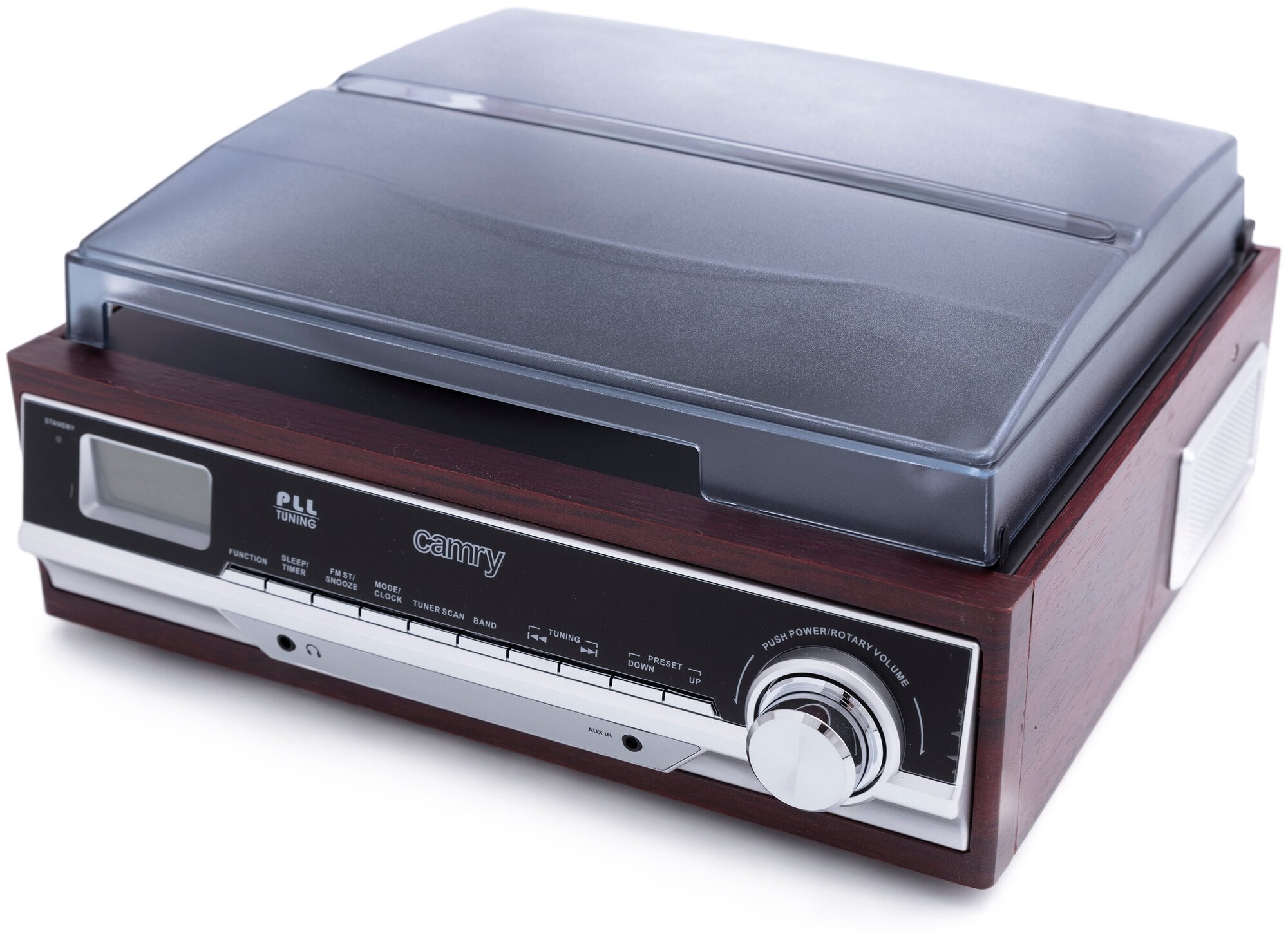 Виниловый проигрыватель с Bluetooth,FM-радио,USB,SD, функцией записи,будильником /Проигрыватель виниловых пластинок CAMRY CR1168/2,2 кг/цвет дерево