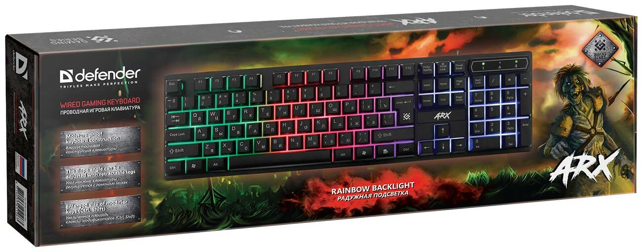 Проводная игровая клавиатура Defender Arx GK-196L RU радужная подсветка информация: