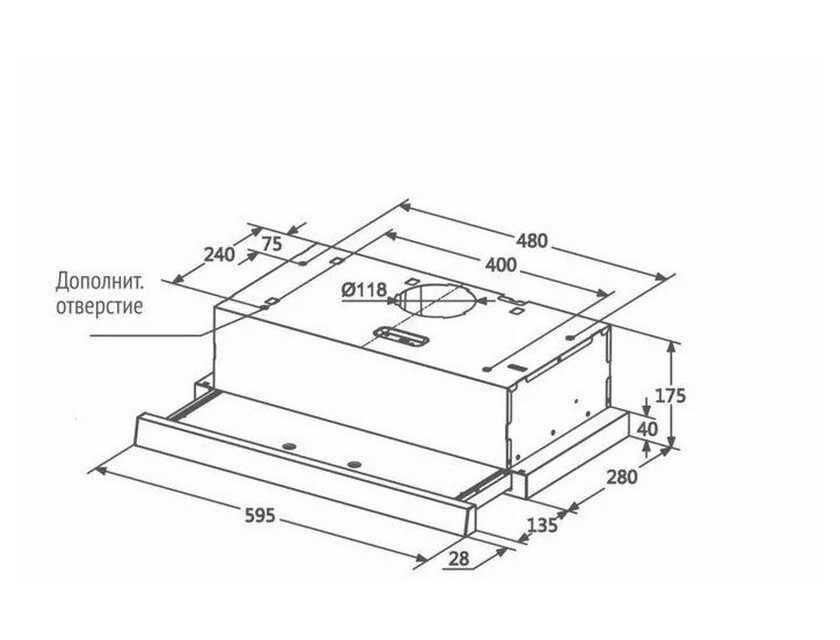 Вытяжка, встраиваемая в шкаф с выдвижным экраном, ширина 60 см, отвод/рециркуляция, 600 м3/час, механическое упра 10 990 ₽