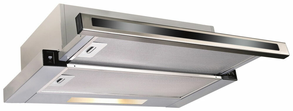 Встраиваемые вытяжки Korting/ Встраиваемая с выдвижным экраном, ширина 50 см, 2 режима, у, клавишное управление, 600 м3/ч., алюминиевые жировые фильтры, LED освещение, панель - нерж сталь+черное стекло