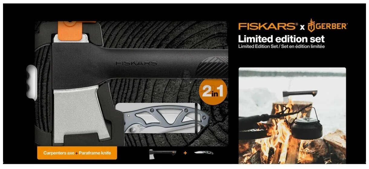 Набор Fiskars Топор + Складной нож Paraframe