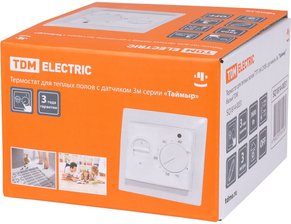 Термостат для теплых полов ТТП 16А 250В с датчиком 3м "Таймыр" белый TDM (sq1814-0031) .
