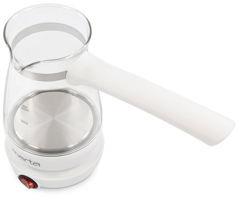 Турка Marta MT-2140 белый жемчуг Мощность 600 Вт, объем 500 мл, колба из закаленного стекла, питание .