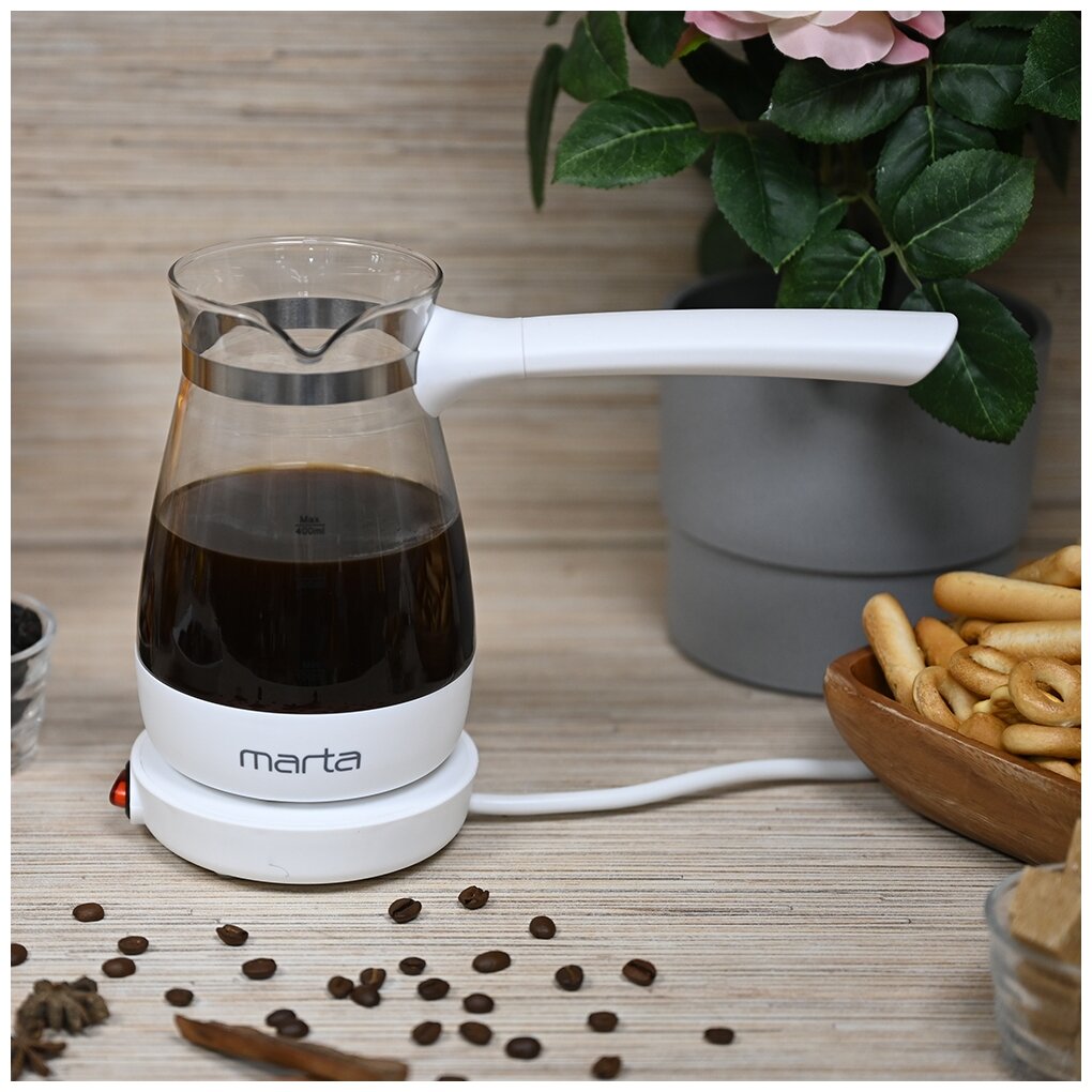 Турка Marta MT-2140 белый жемчуг Мощность 600 Вт, объем 500 мл, колба из закаленного стекла, питание .