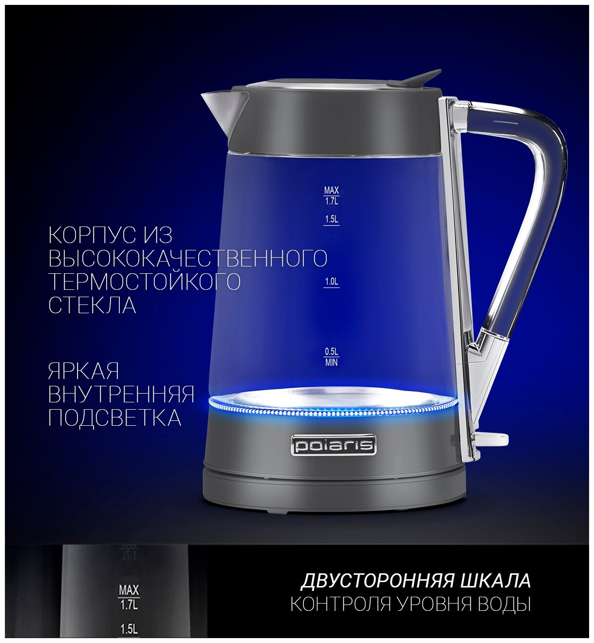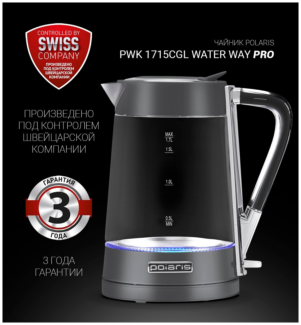 Чайник POLARIS PWK 1715CGL Water Way Pro графит информация: