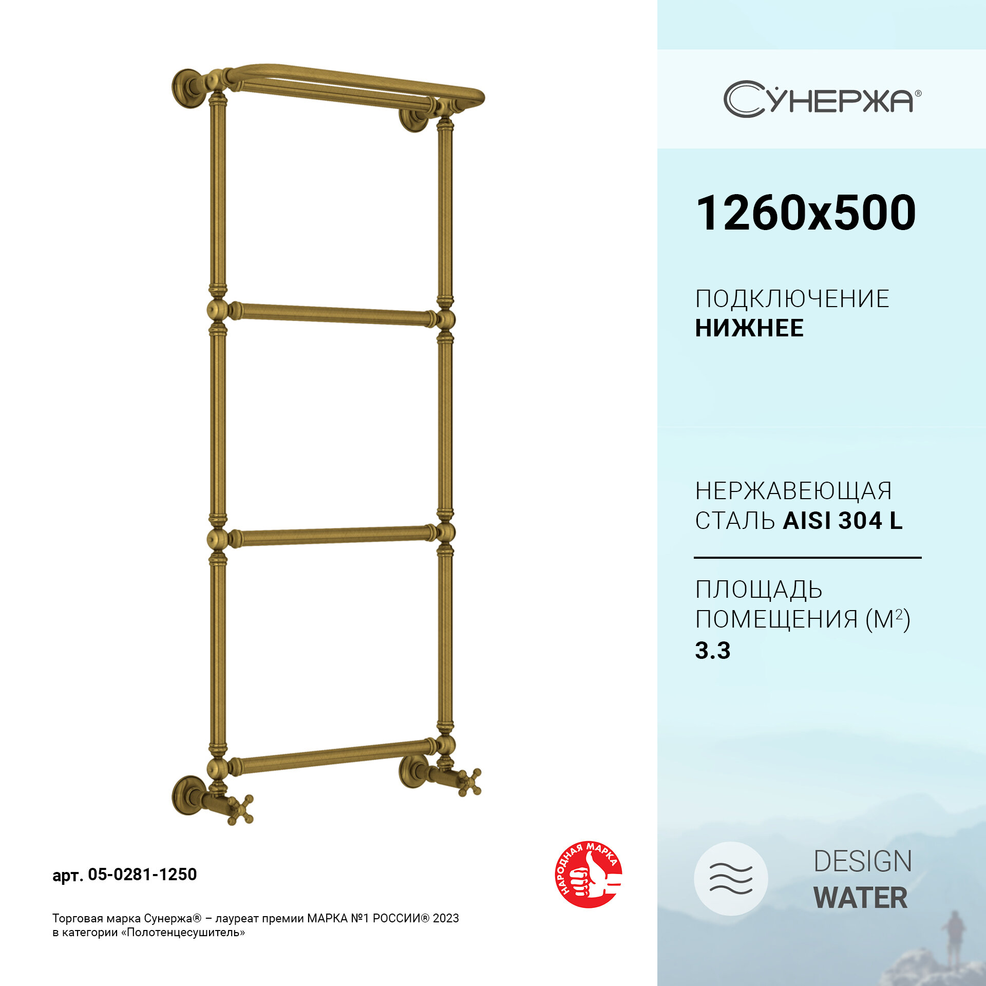 Отзывы на Полотенцесушитель водяной Сунержа Ренессанс 1386 1260x500 Состаренная бронза