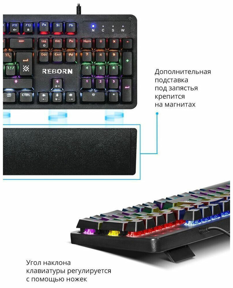 Механическая клавиатура Defender Reborn GK-165DL RU anti-ghost радужная информация: