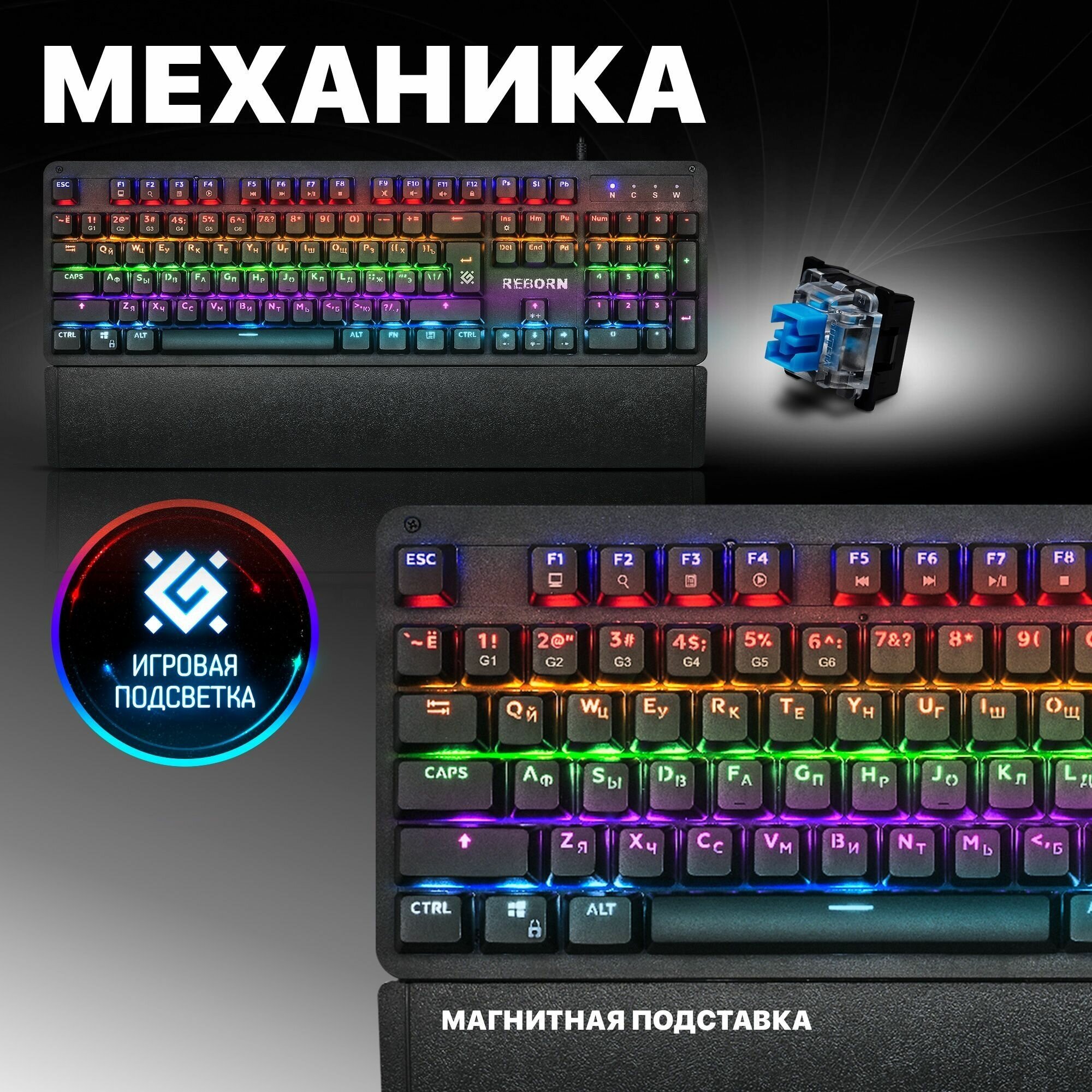 Клавиатура игровая Defender Reborn GK-165DL RU механическая 104 кл, литые буквы, кабель 1.5 м