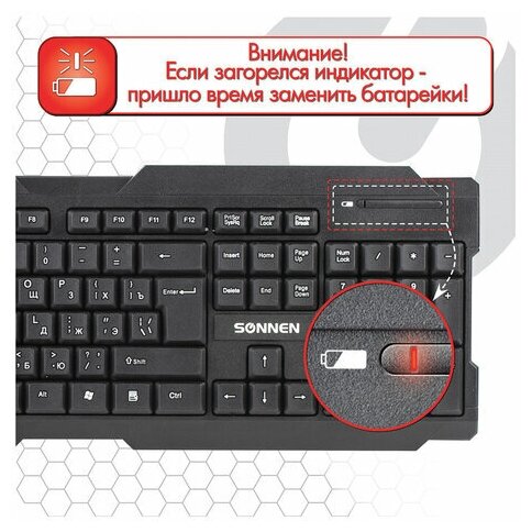 Клавиатура беспроводная SONNEN KB-5156, USB, 104 клавиши, 2,4 Ghz, черная, 512654 информация: