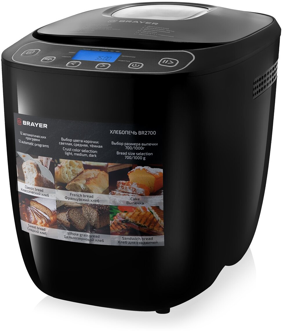 Хлебопечка Brayer BR2700, черный, 550 Вт, 12 автоматических программ