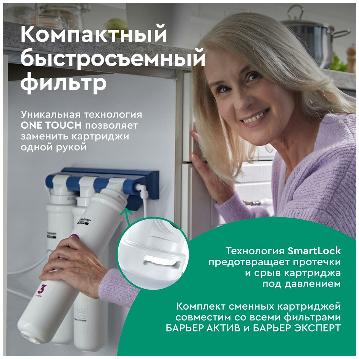 Фильтр под мойку для очистки воды трехступенчатый, быстросъемный барьер эксперт Жесткость х2, двойная защита от накипи