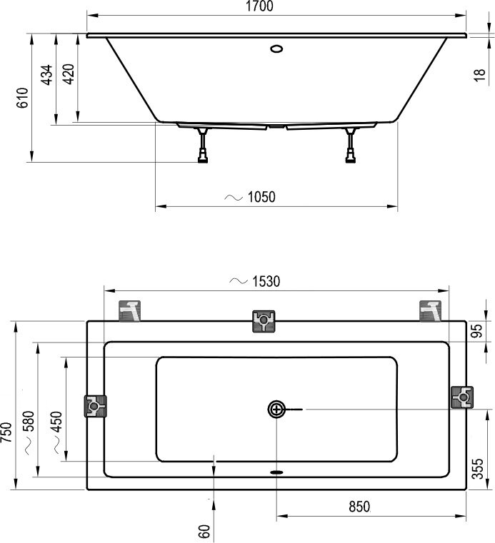 Акриловая ванна Ravak Formy 01 Slim 170x75 информация: