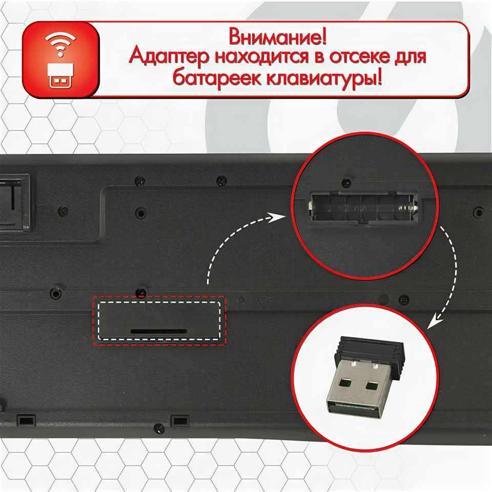 Набор беспроводной SONNEN K-648, клавиатура 117 клавиш, мышь 4 кнопки 1600 dpi, черный, 513208, 513208 1 177 ₽