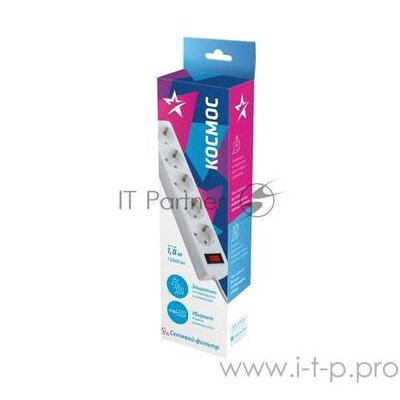Сетевой фильтр КОСМОС FKsm3m-5g(W), 5 розеток, 3 м, с/з, 10А / 2200 Вт
