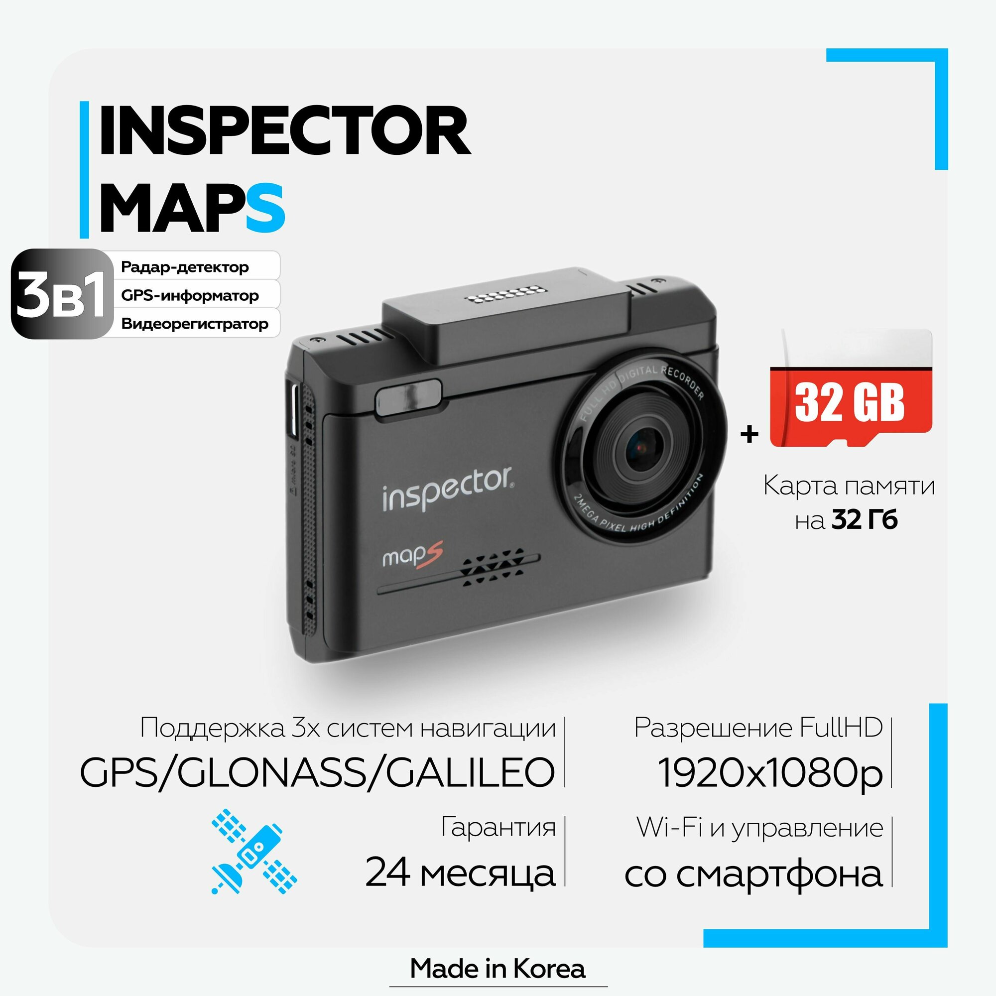 Видеорегистратор с радар-детектором Inspector MapS GPS Глонасс Maps .