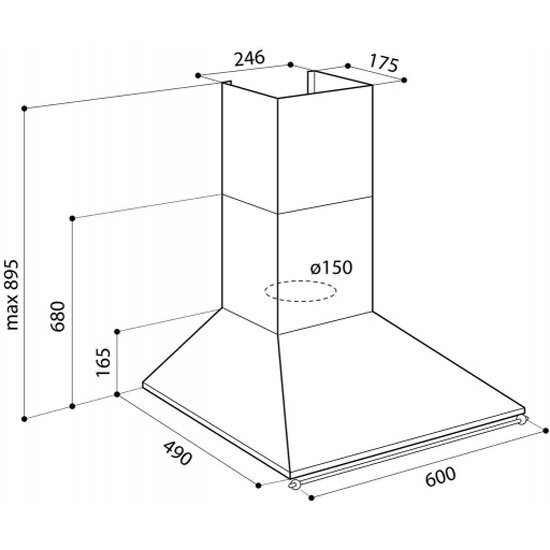 Вытяжка кухонная встраиваемая LEX HYPER 600 IX, отделка нержавеющая сталь, 3 скорости, кнопочное управление.