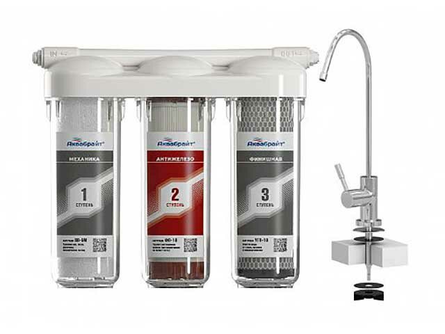 Трехступенчатая система очистки воды под мойку с отдельным краном. Аквабрайт абф- триа Антижелезо