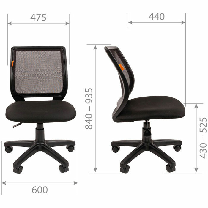 Кресло офисное без подлокотников, 395х420х720(940) мм, черное, ткань