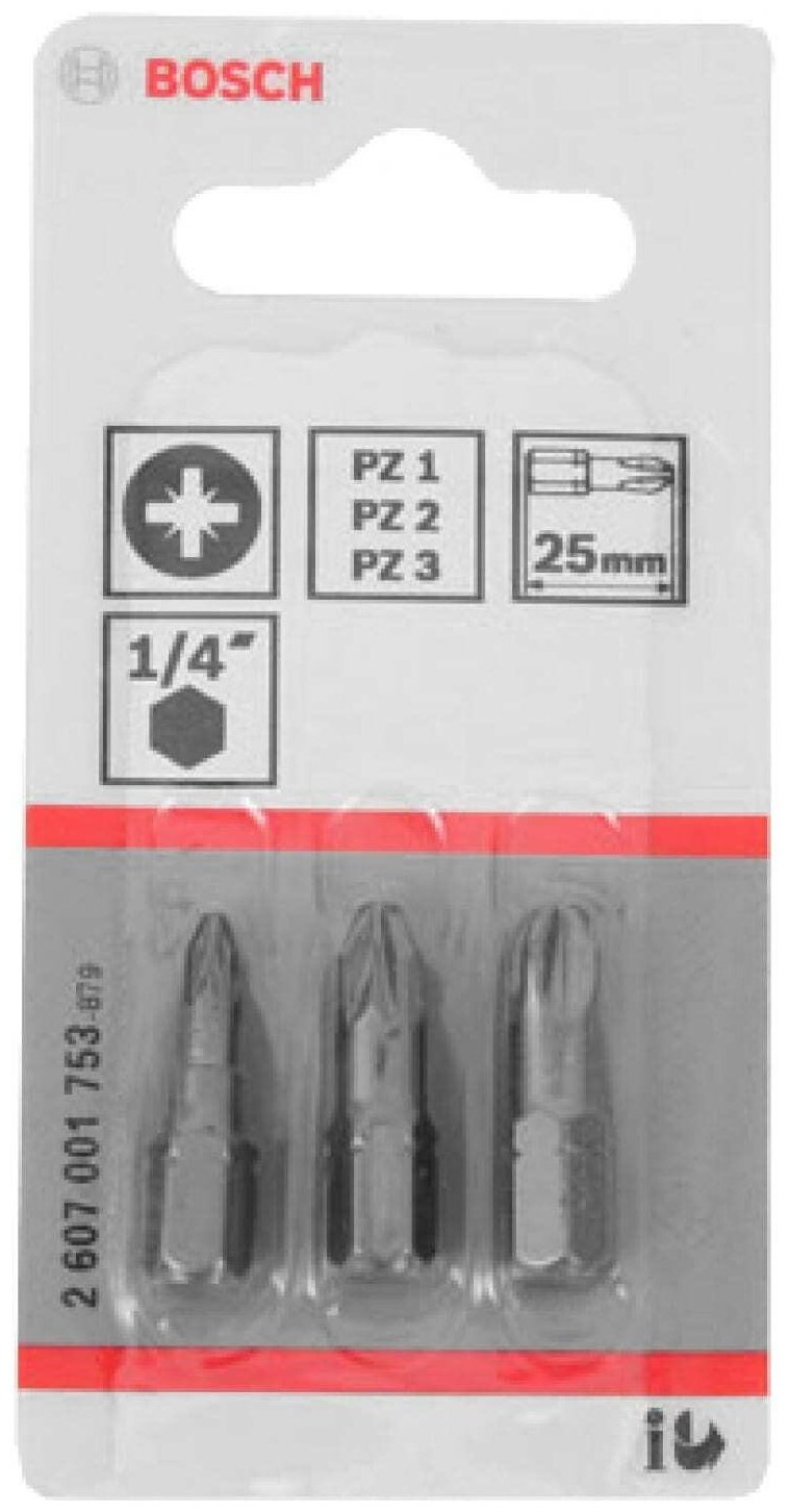 Набор бит BOSCH Extra Hard 25 мм PZ/1/2/3 3шт информация: