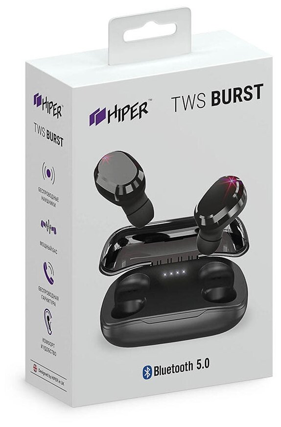 Наушники с микрофоном HIPER TWS Burst, Bluetooth, черный информация: