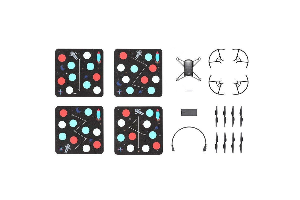 | Комплектация | 4 несущих винта (2CW/2CCW), 4 запасных несущих винта (2CW/2CCW), защита несущих винтов, 4 × Mission Pad, ключ для снятия несущих винтов, micro USB кабель |
