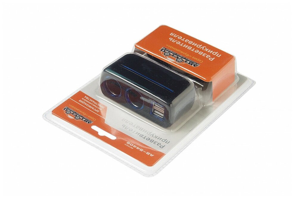 Отзывы на Разветвитель прикуривателя AB-54406 BLACK на 2 гнезда + 3USB, с подсветкой, длина кабеля 60см (двусторонний скотч в комплекте) 12-24V автостоп