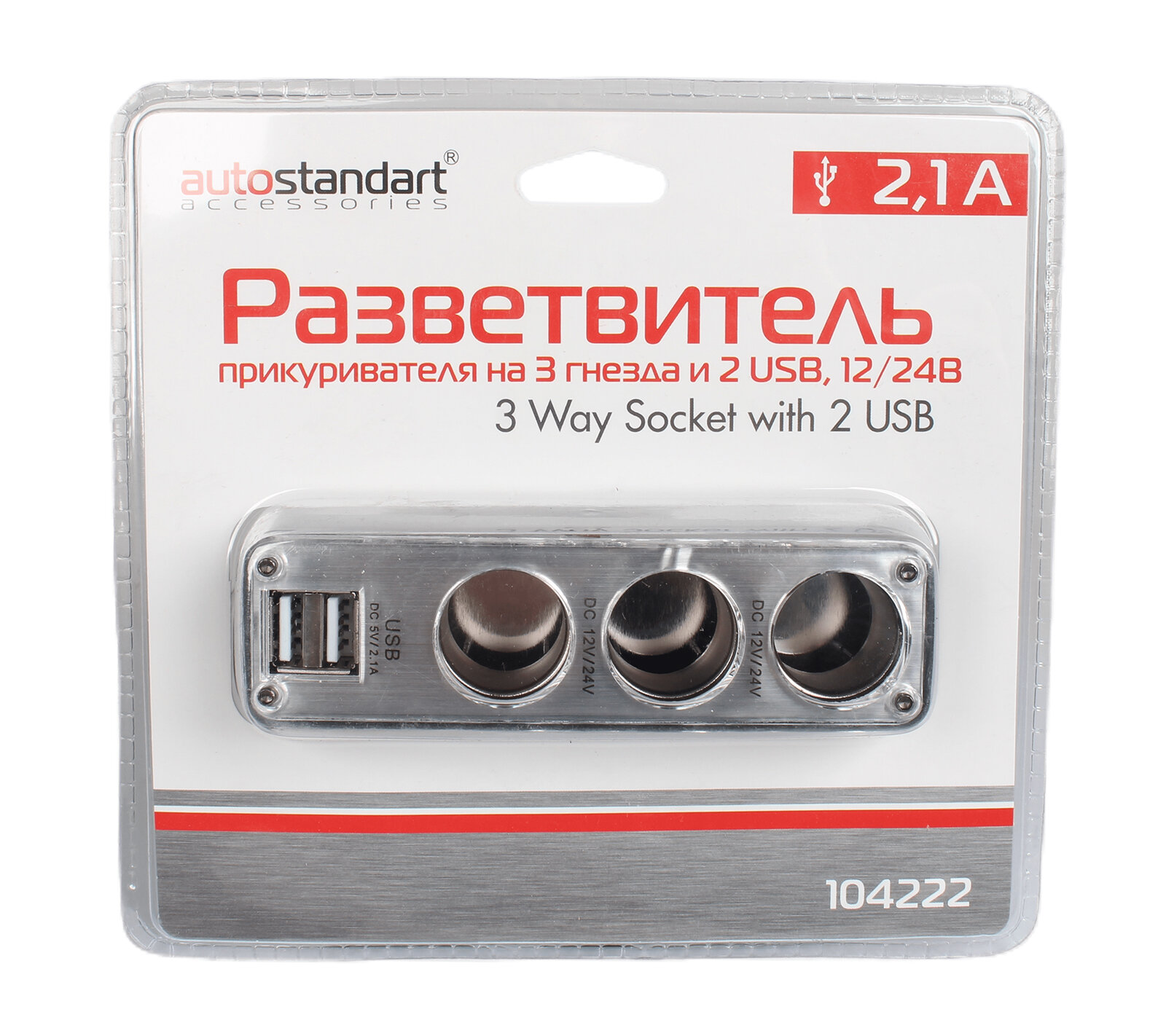 104222 AUTOSTANDART Разветвитель прикуривателя на 3 гнезда + 2 USB AUTOSTANDART 104222