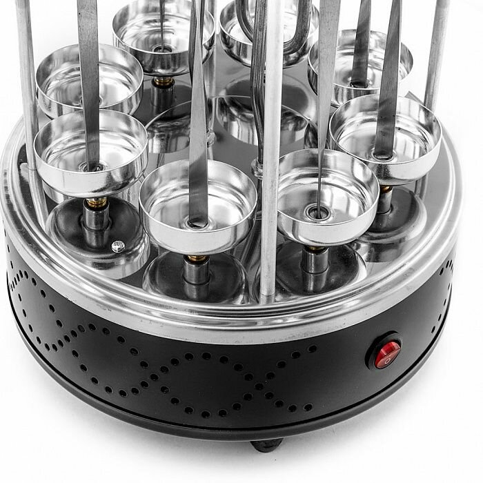 | Дополнительная информация | 8 чашечек для сбора жира; максимальная загрузка 5 кг; частота вращения шампуров 3 об/мин; функция автоматического вращения шампуров |