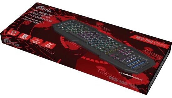 Клавиатура Ritmix RKB-550, проводная с подсветкой черная информация: