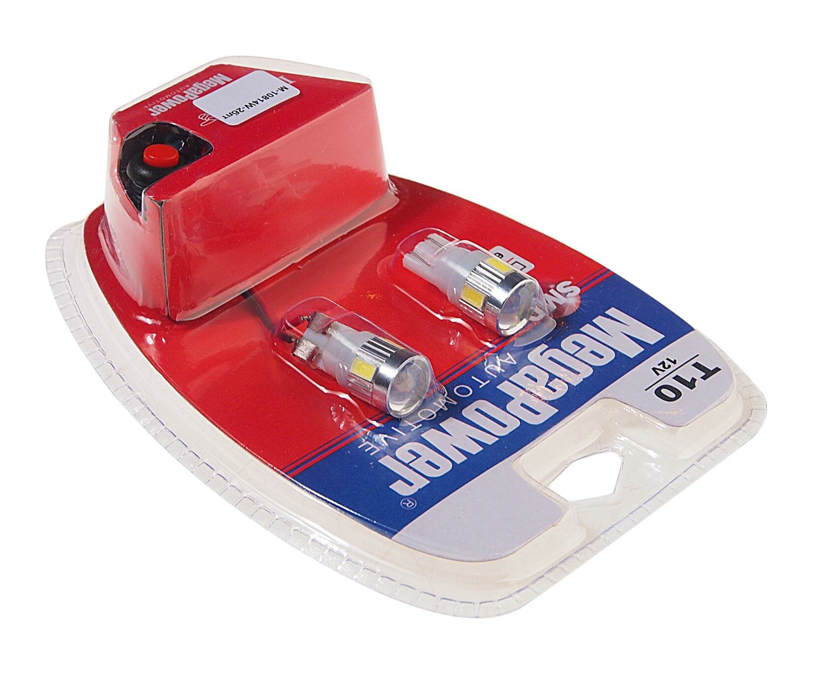 MEGAPOWER-AUTOMOTIVE 10814W-2БЛТ Лампа светодиодная 12V W5W T10 W2.1x9.5d 6000K 6 LED с тестером блистер (2шт.) MEGAPOWER