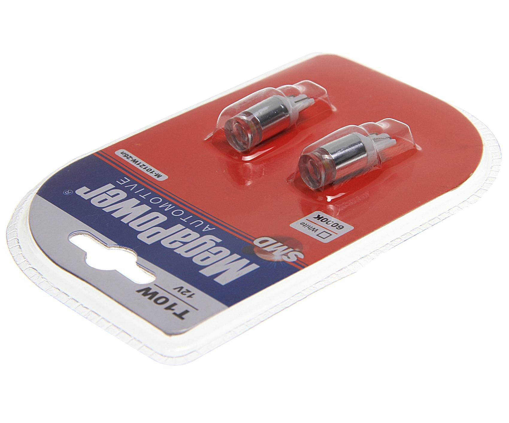 MEGAPOWER M10120W2KN Автолампа T10W W2,1x9,5d 1 SMD CREE WHITE блистер с тестером 2 шт 6000K 120лм 12V MEGAPOWER 10 6 910 ₽