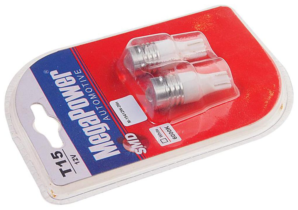 Отзывы на Лампа светодиодная 12V T15W W2.1x9.5d бесцокольная блистер (2шт.) MEGAPOWER 15412W-2бл