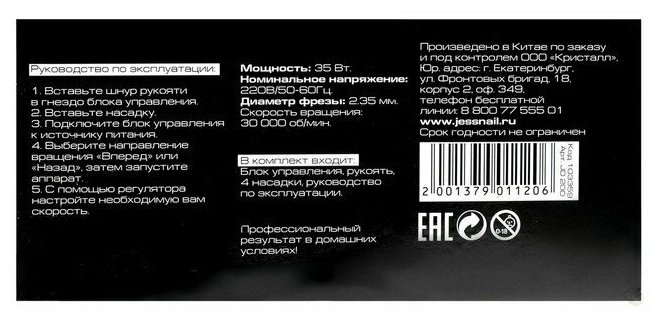 Машинка для маникюра и педикюра JessNail JD200 PRO, 35 Вт, 30000 об/мин JessNail 2928913 . 5 272 ₽