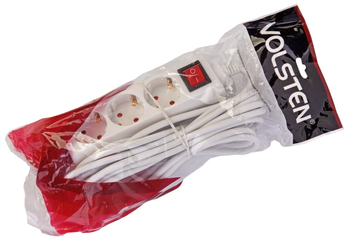 Удлинитель Volsten S 3x5-ZDV, 3 розетки, 5 м, с/з белый