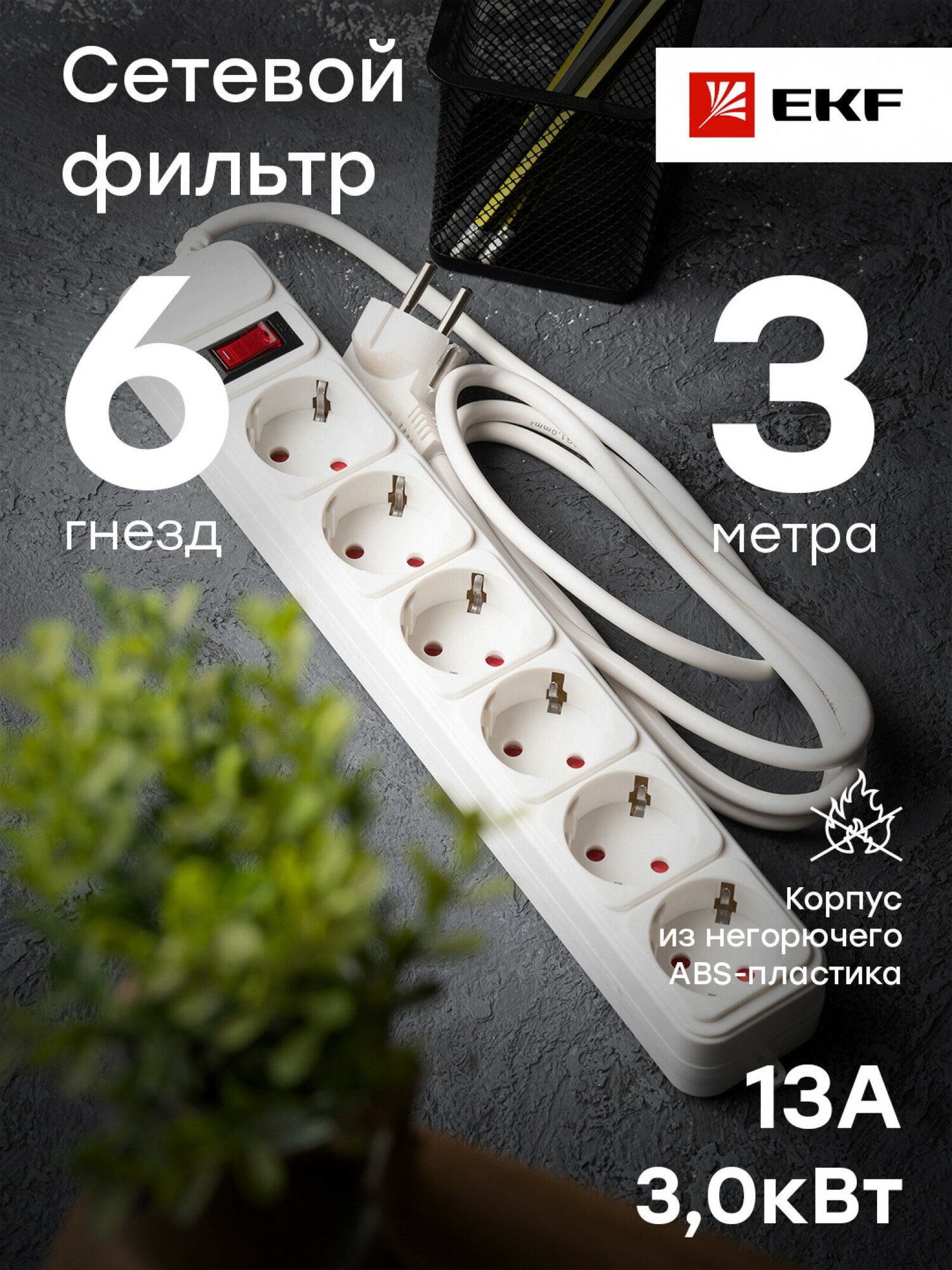 Отзывы на Сетевой фильтр EKF UFA16-310-6-03 6*3м 16А/3,2кВт с выкл. c/з ПВС 3х1,0 Блокбастер XL EKF PROxima U