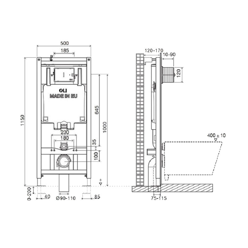 Комплект инсталляции OLI 80 Sanitarblock ECO (0500*1090*0140), мет. крепл., механика (886914)