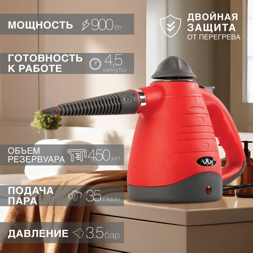 Пароочиститель VLK Sorento 4900, 900 Вт, 450 мл, 6 насадок, 3.5 бар, 28 г/мин, шнур 2 м