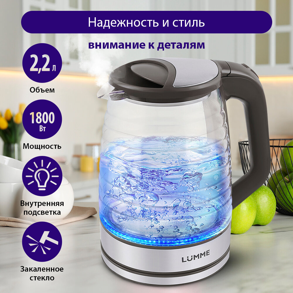 Чайник Lumme LU-165 темный топаз 1800W 2,2л стеклянный автоотключение при закипании/отсутствии воды .