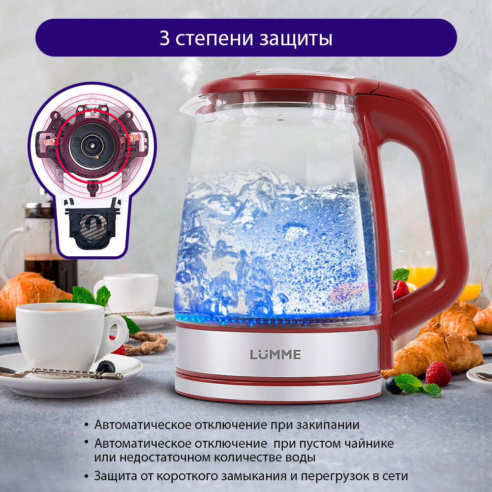 LUMME LU-165 бордовый гранат чайник стеклянный информация: