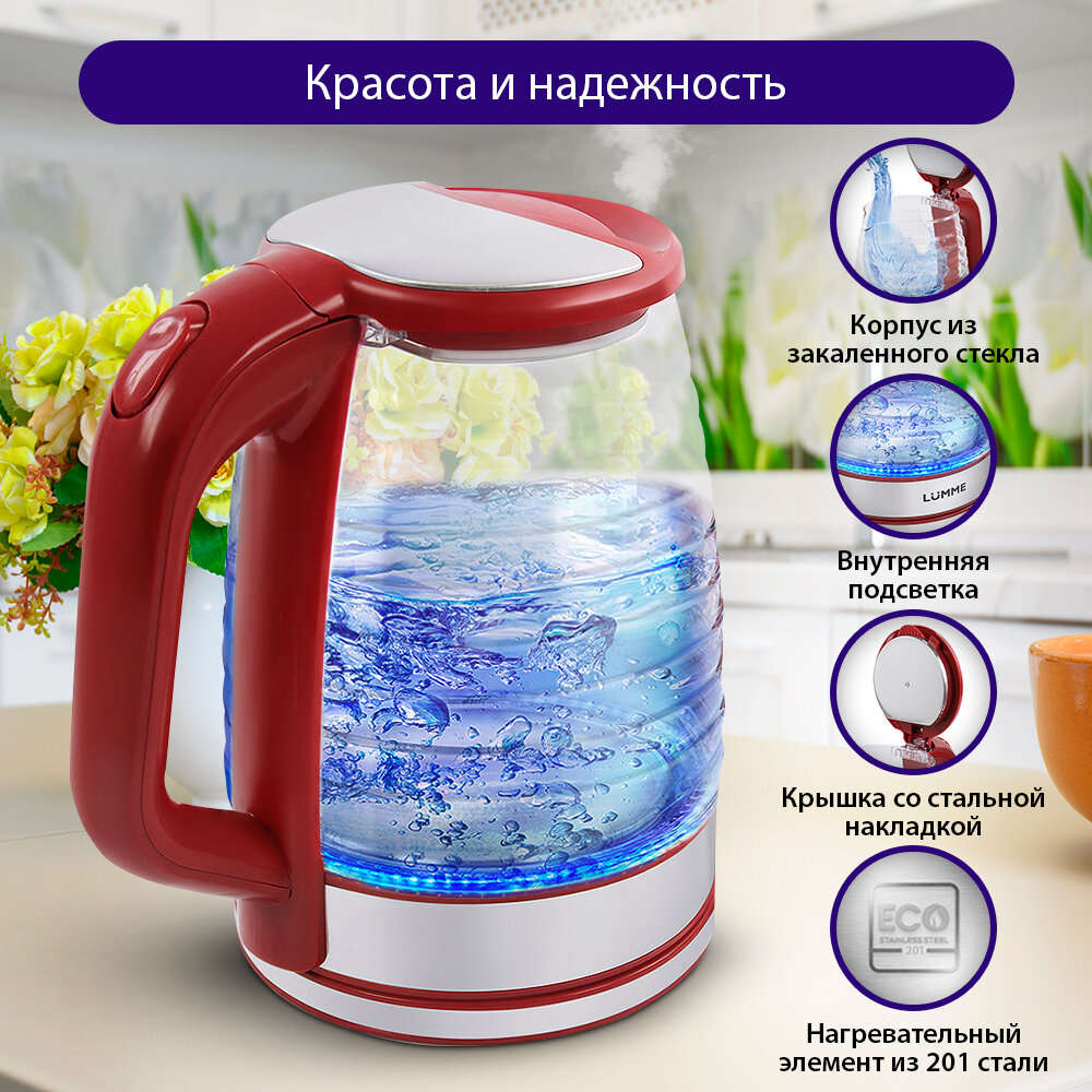 Чайник электрический Lumme LU-165 стеклянный бордовый гранат
