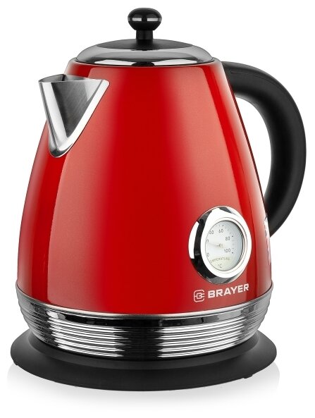 Чайник электрический BRAYER BR1007RD, 2200 Вт, 1,7 л, Strix, автоотключение, нержавеющая сталь, встроенный термометр