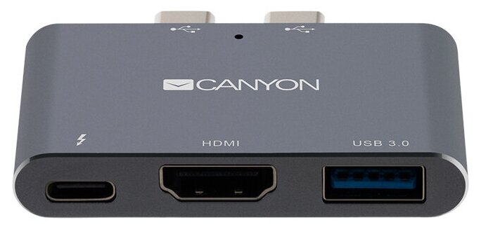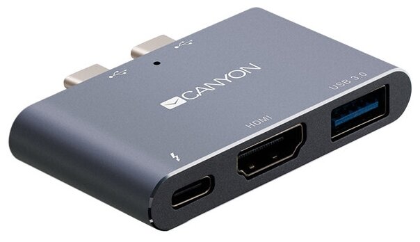 CANYON DS-1 Multiport Docking Station with 3 port, with Thunderbolt 3 Dual type C male port, 1*Thunderbolt 3 female+1*HDMI+1*USB3.0. Input 100-240V, Output USB-C PD100W&USB-A 5V/1A, Aluminium alloy, Space gray, 59*35.5*10mm, 0.028kg 1 579 ₽
