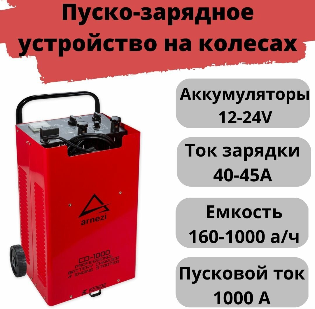 зарядно-пусковое устройство cd-1000 (12/24в, 40-45а, акб 160-1000ач, пуск 1000а) arnezi 24 230 ₽
