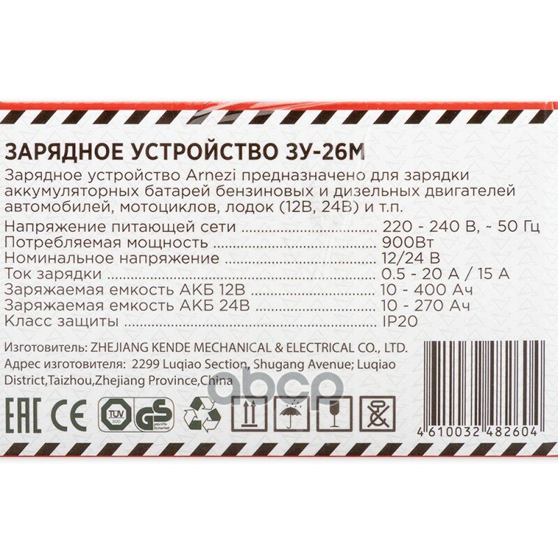 ARNEZI R7990107 Зарядное устройство ЗУ-26М 12/24В 0.5-20/15А 1шт 4 970 ₽