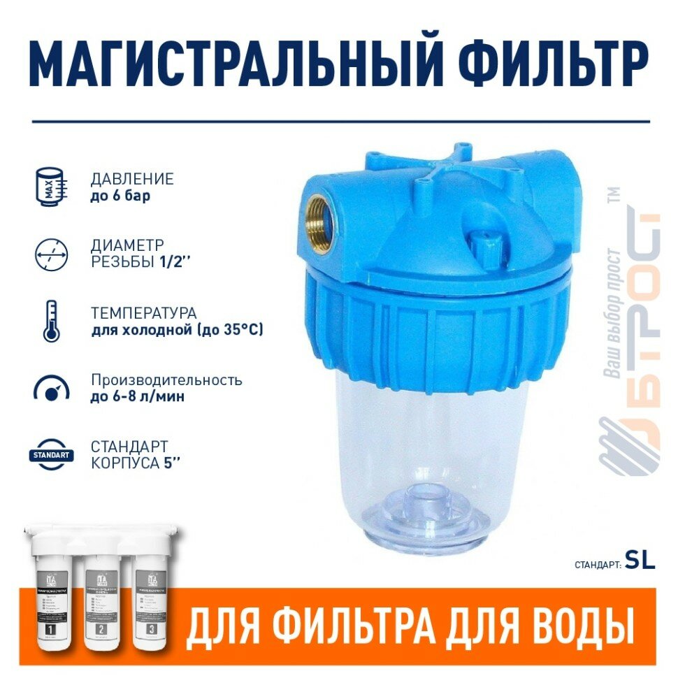 Корпус магистрального фильтра,без картриджа, ITA-05-1/2, размер 5SL, резьба 1/2 дюйма
