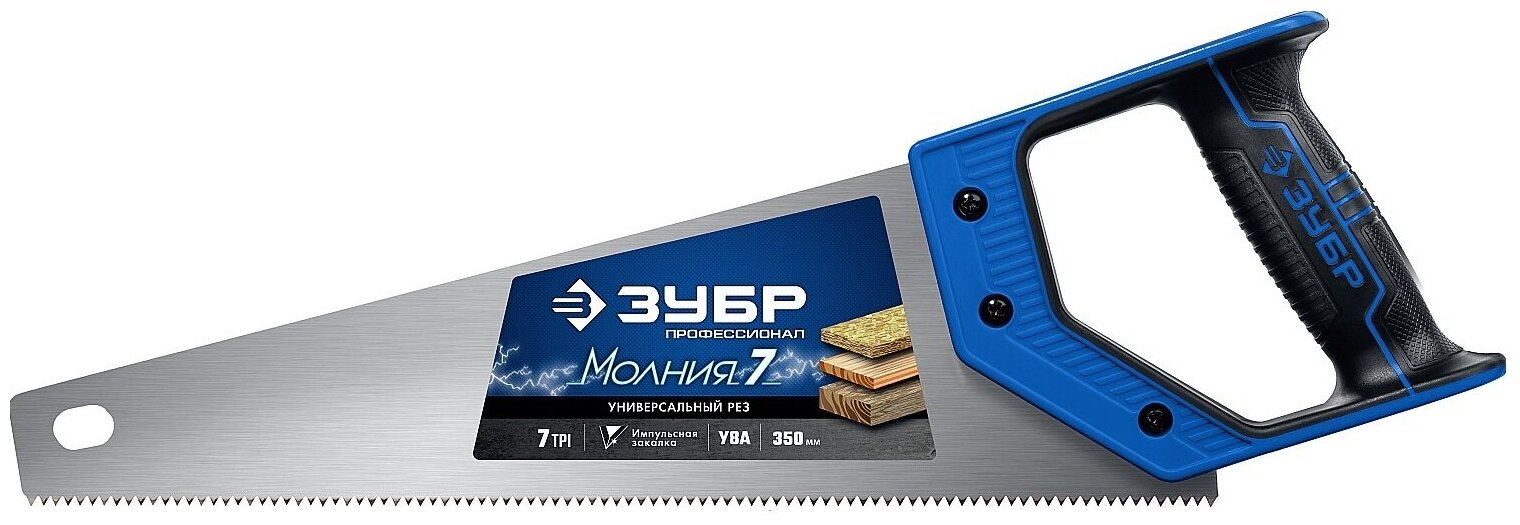 Ножовка универсальная (пила) ″МОЛНИЯ-7″ 350 мм, 7 TPI, закалка, рез вдоль и поперек волокон, для средних заготовок, фанеры, ДСП, МДФ, ЗУБР информация: