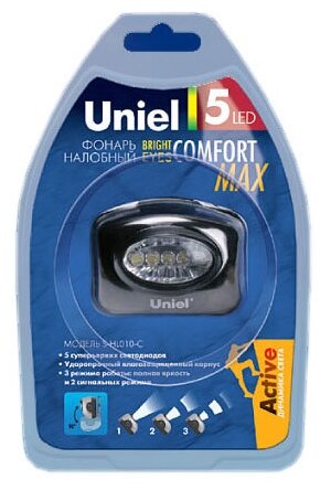 Фонарь Uniel Налобный S-hl010-c Стандарт 5ХLED 3ХААА Алюмин Корп Кламшел Uniel 03211 .