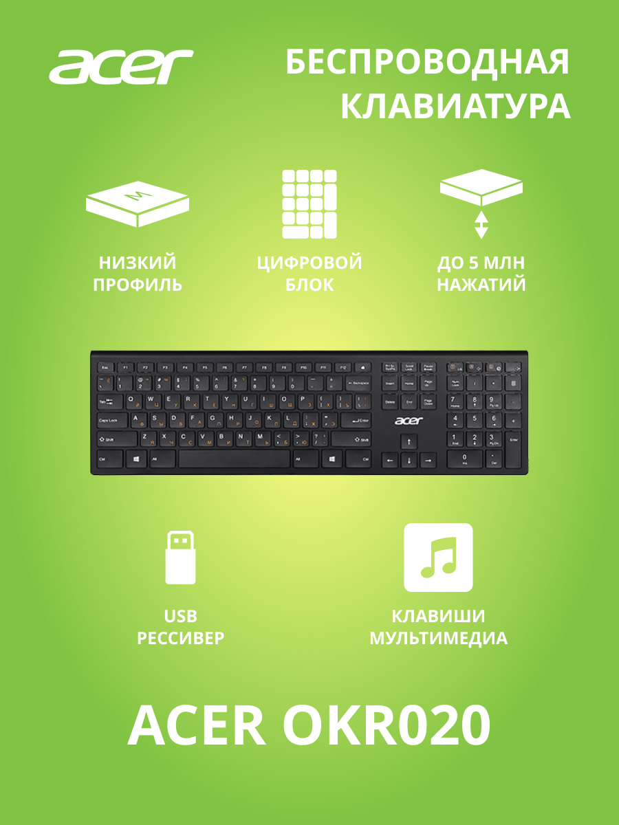 Клавиатура Acer OKR020, USB, Радиоканал, черный [zl.kbdee.004] информация: