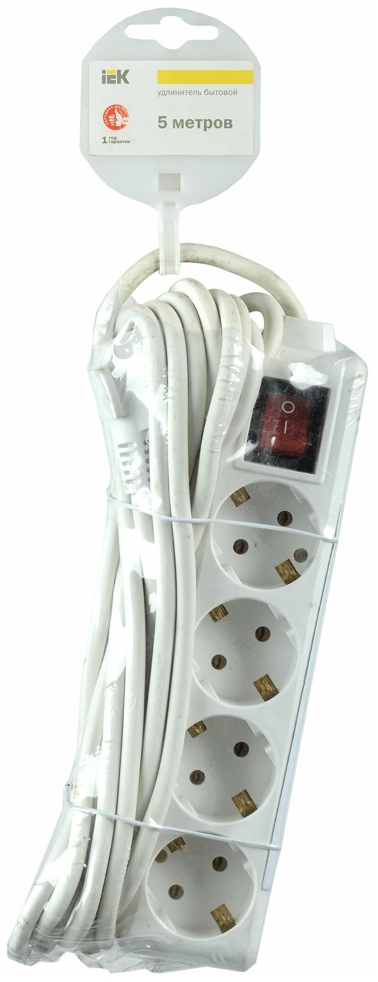 Отзывы на Удлинитель IEK WYP10-16-04-05-ZK-N, 4 розетки, 5 м, с/з, 16А / 3500 Вт белый