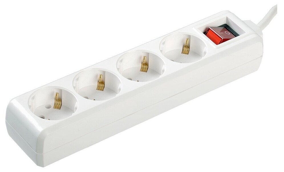 Удлинитель с выключателем IEK У04К-выкл, ПВС 3 x 1 мм², с заземлением, 4 розетки, 5 м, белый 553 ₽